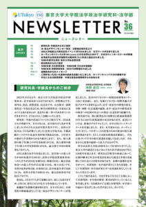 “News Letter”は、東京大学大学院法学政治学研究科・法学部卒業生委員会が年2回発行する情報冊子です。法学部・大学院の研究・教育活動や卒業・修了生向けイベントのお知らせなどを掲載しています。東京大学法学部および大学院法学政治学研究科を卒業・修了され、卒業生名簿にご登録されている皆様へお送りしています。